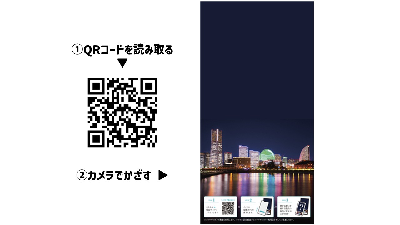 ②特設サイトからARカメラを起動し、下記DMのデザイン(横浜の夜景)にかざします。